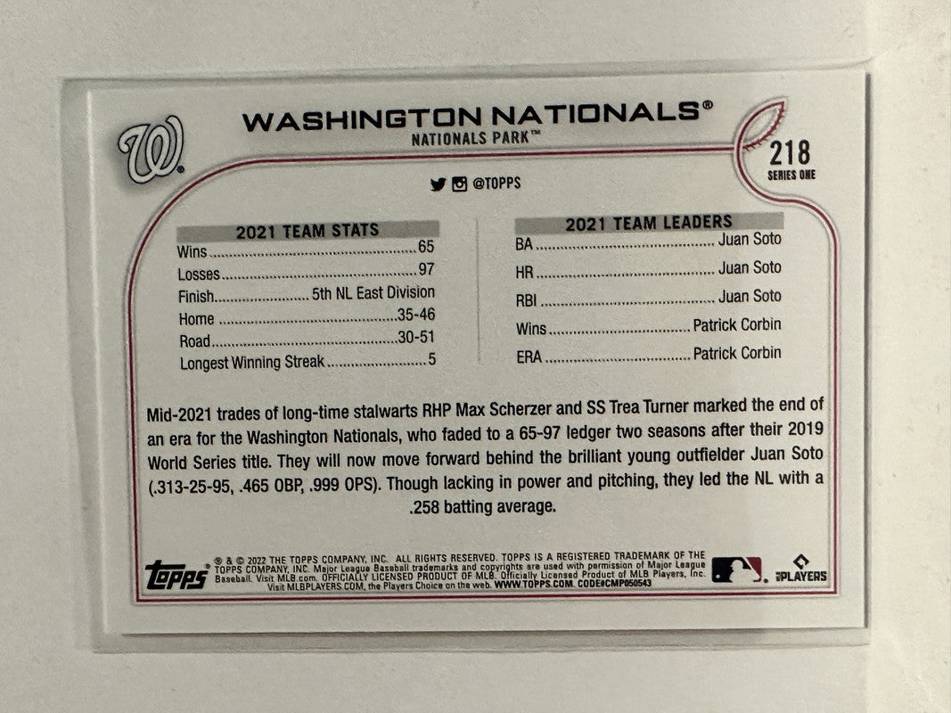 #218 Nationals Park Washington Nationals 2022 Topps Series One Baseball Card