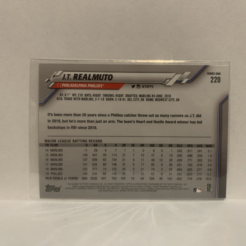 #220 J.T. Realmuto Philadelphia Phillies 2020 Topps Series One Baseball Card JD