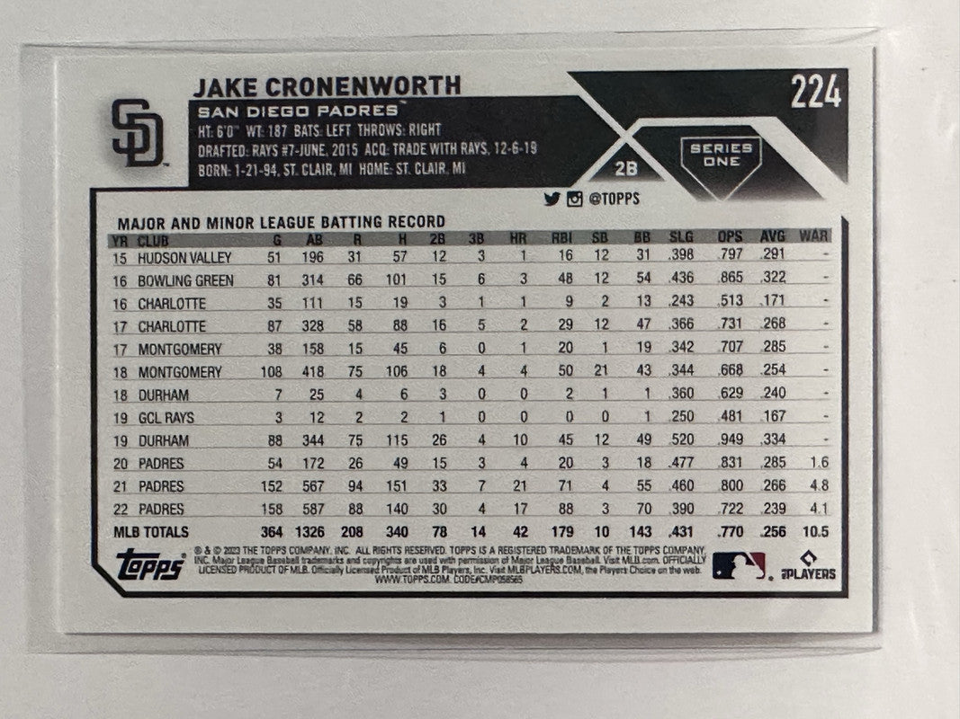 #224 Jake Cronenworth San Diego Padres 2023 Topps Series One Baseball Card