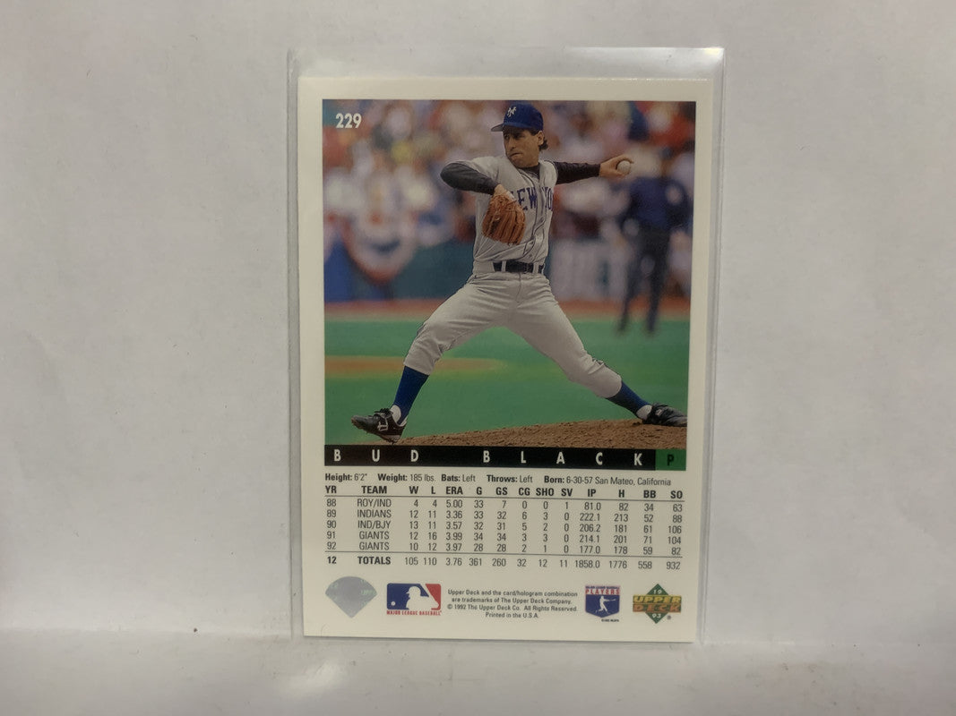 #229 Bud Black New York Giants 1992 Upper Deck Baseball Card NA