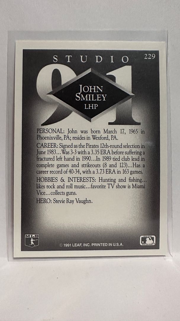 #229 John Smiley Pittsburgh Pirates 1991 Studio Baseball Card