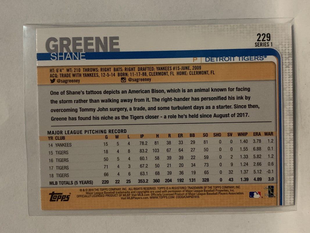 #229 Shane Greene Rainbow Detroit Tigers 2019 Topps Series One Baseball Card