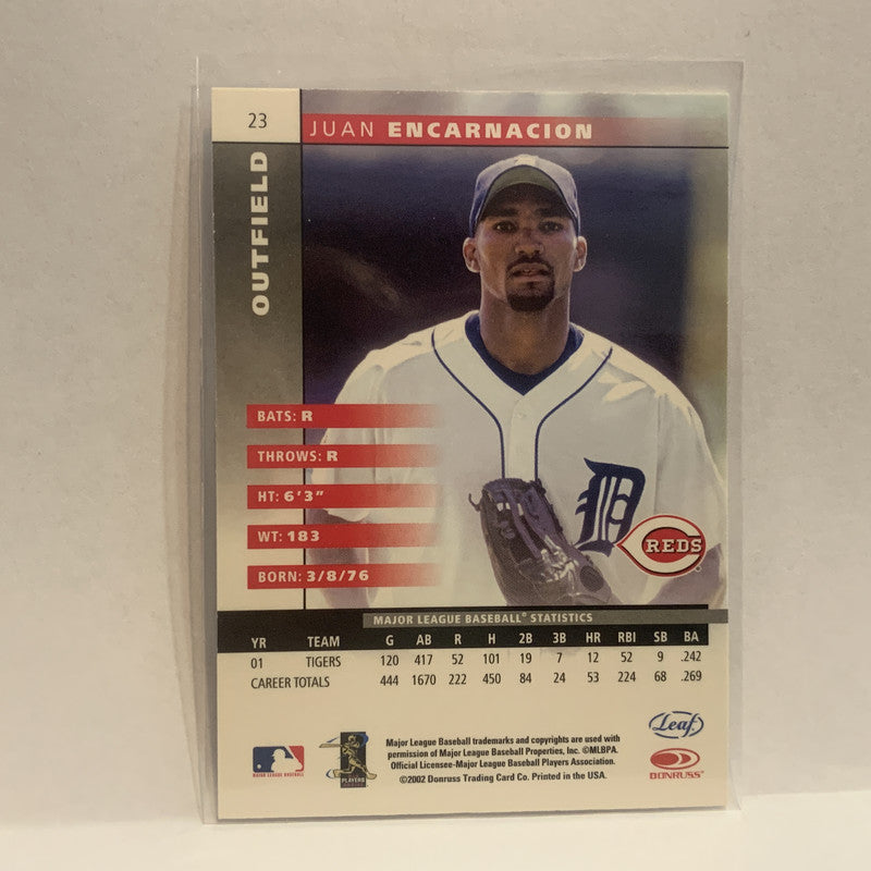 #23 Juan Encarnacion Cincinnati Reds 2002 Donruss Leaf Baseball Card HK