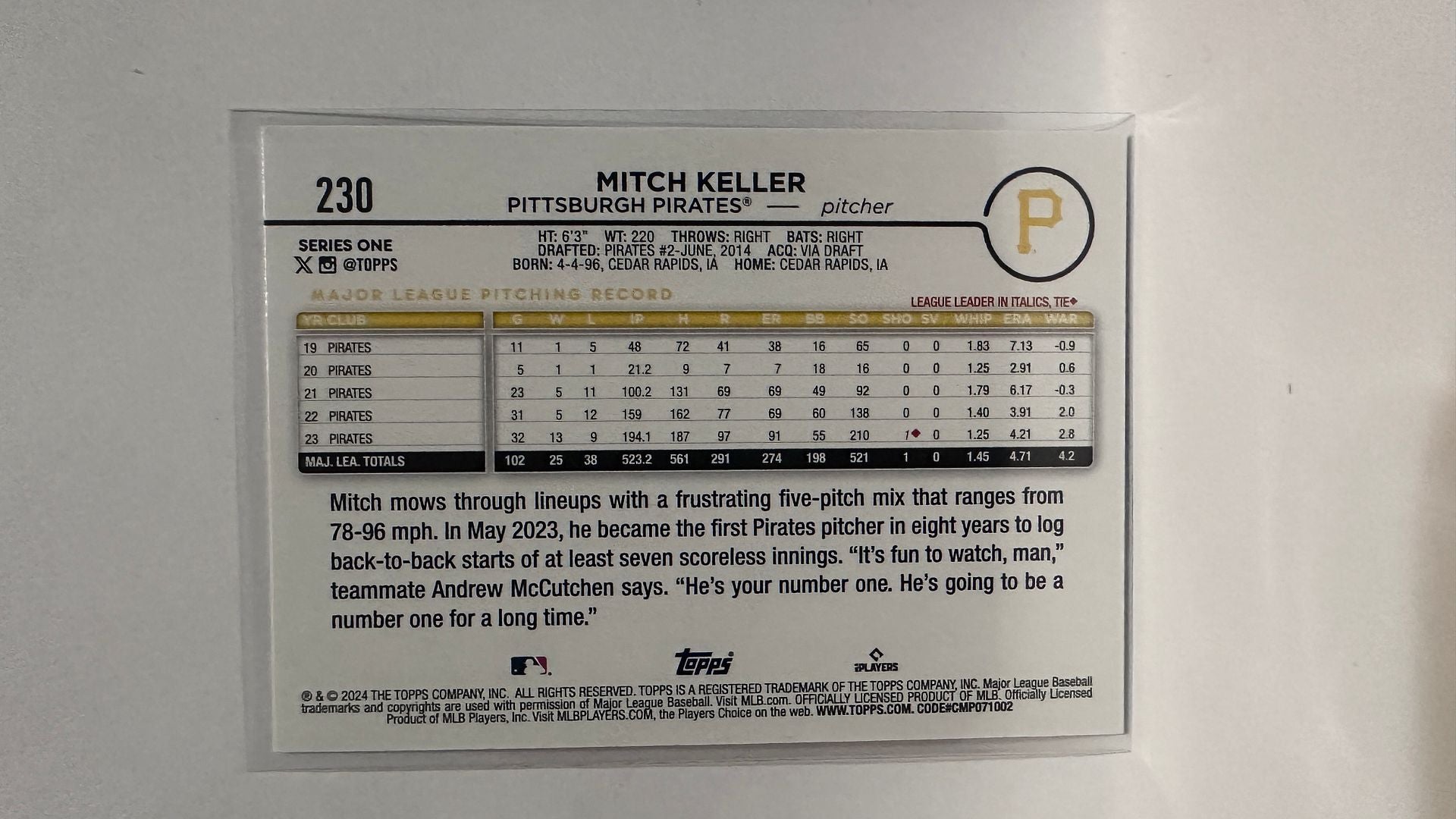 #230 Mitch Keller Pittsburgh Pirates 2024 Topps Baseball Card