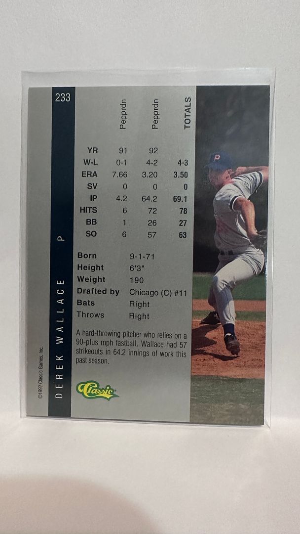 #233 Derek Wallace Draft Pick Chicago Cubs 1992 Four Sport Classic Baseball Card