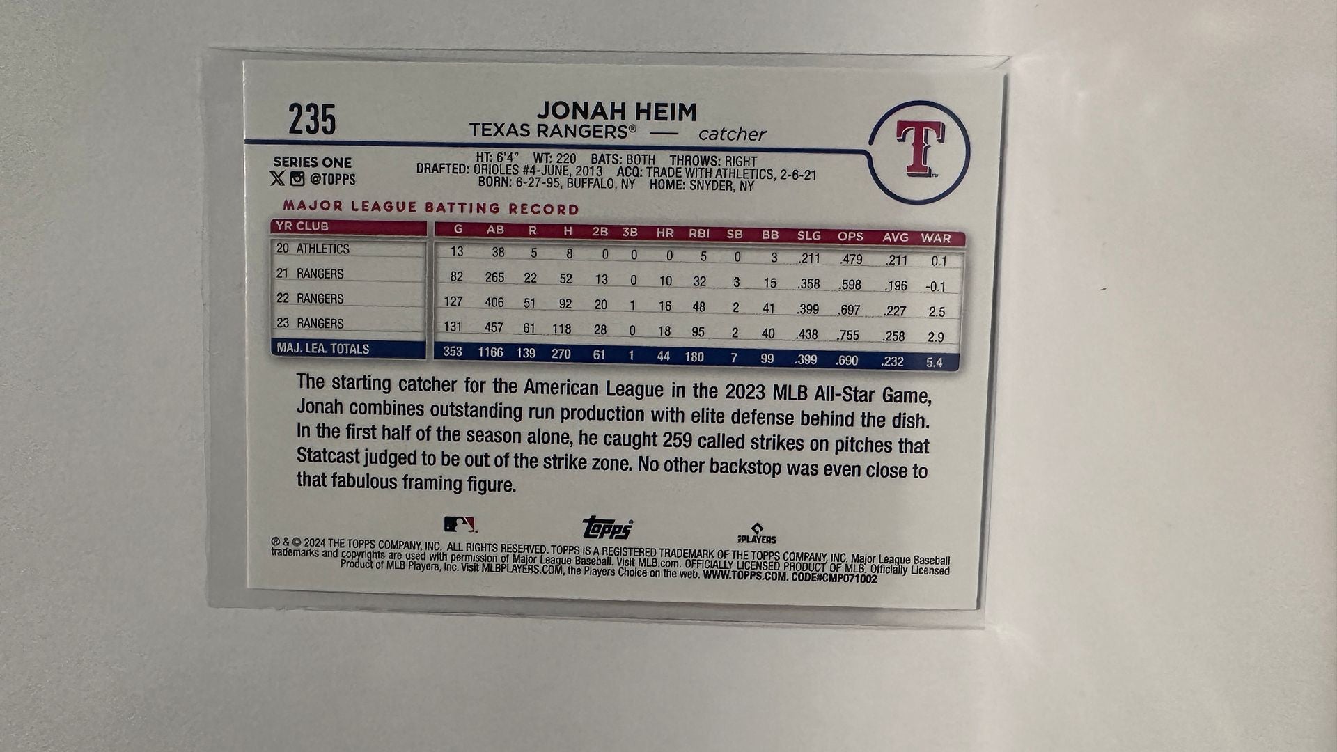 #235 Jonah Heim Texas Rangers 2024 Topps Baseball Card