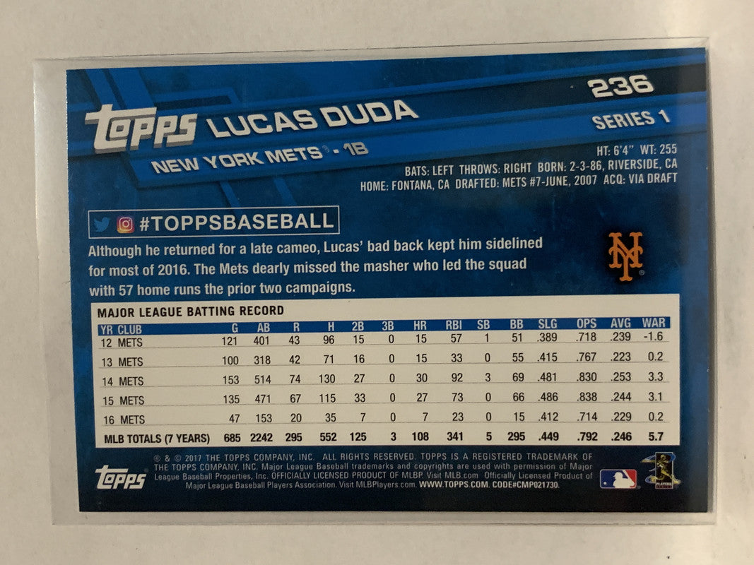 #236 Lucas Duda New York Mets 2017 Topps Series One Baseball Card