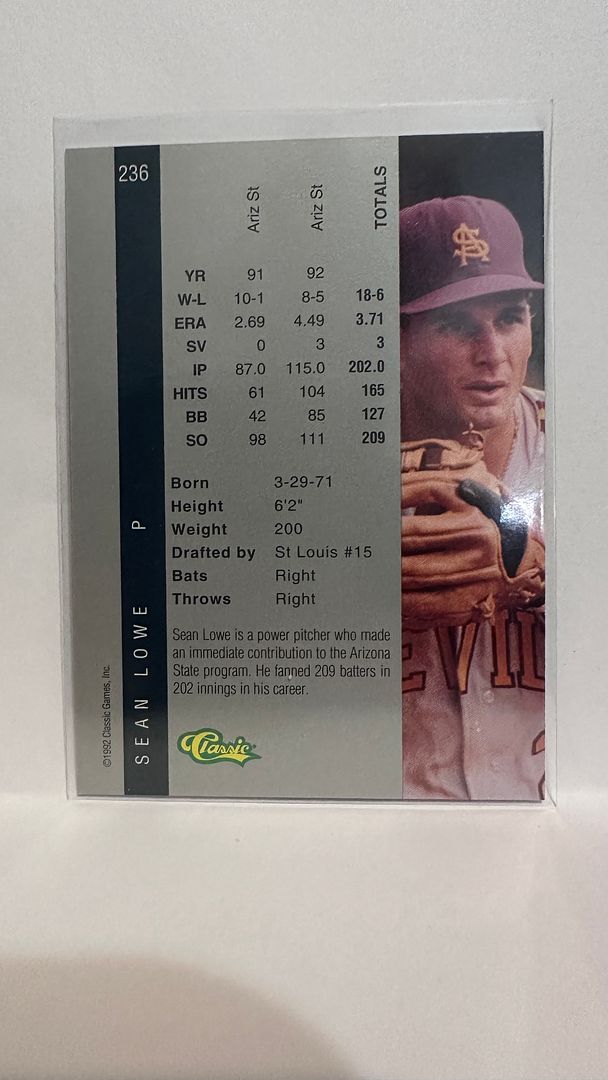 #236 Sean Lowe Draft Pick St Louis Cardinals 1992 Four Sport Classic Baseball Card