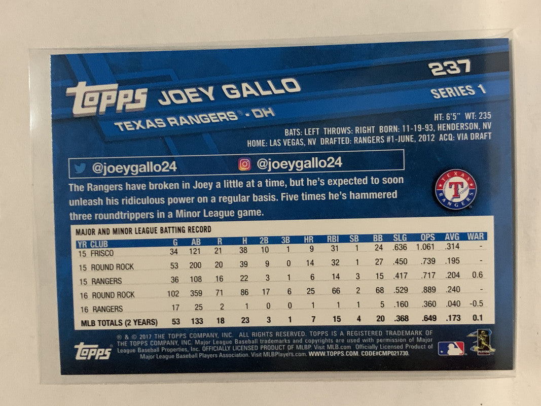 #237 Joey Gallo Texas Rangers 2017 Topps Series One Baseball Card
