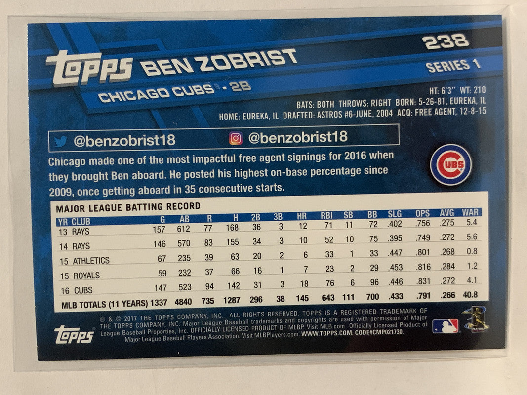 #238 Ben Zobrist Chicago Cubs 2017 Topps Series One Baseball Card