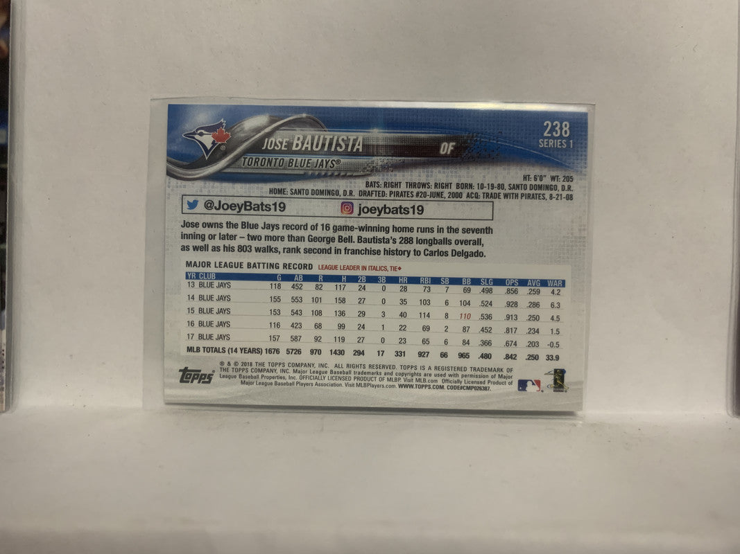 #238 Jose Bautista Toronto Blue Jays 2018 Topps Series 1 Baseball Card NW