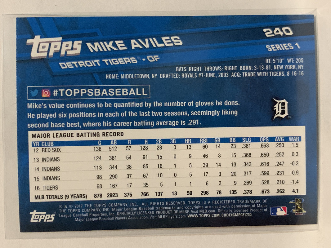 #240 Mike Aviles Detroit Tigers 2017 Topps Series One Baseball Card