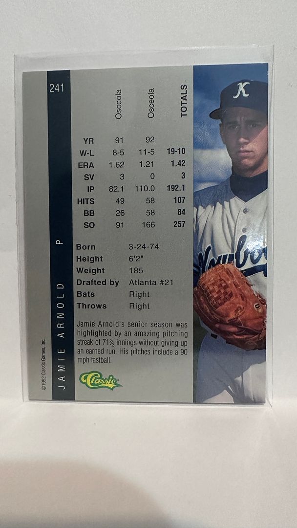 #241 Jamie Arnold Draft Pick Atlanta Braves 1992 Four Sport Classic Baseball Card