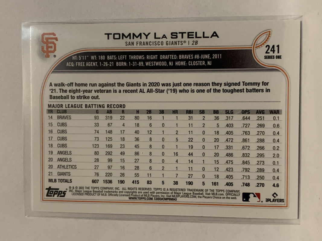 #241 Tommy La Stella San francisco Giants 2022 Topps Series 1 Baseball Card MLB
