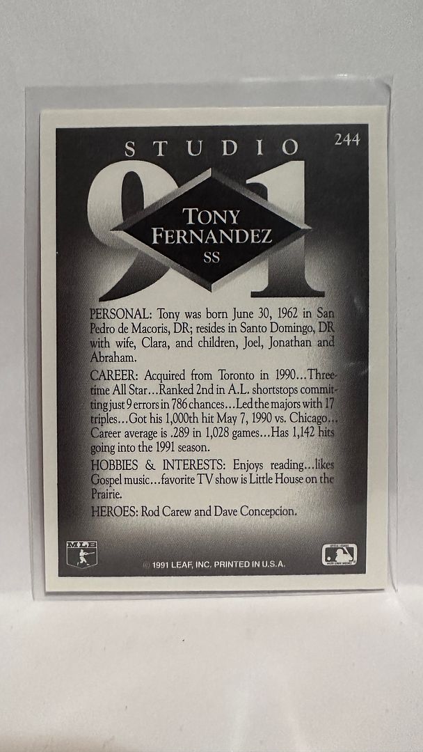 #244 Tony Fernandez San Diego Padres 1991 Studio Baseball Card