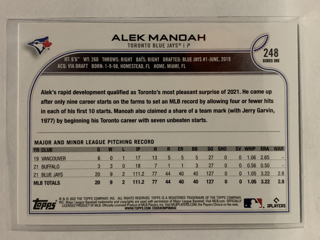 #248 Alek Manoah Rookie Toronto Blue Jays 2022 Topps Series One Baseball Card MLB