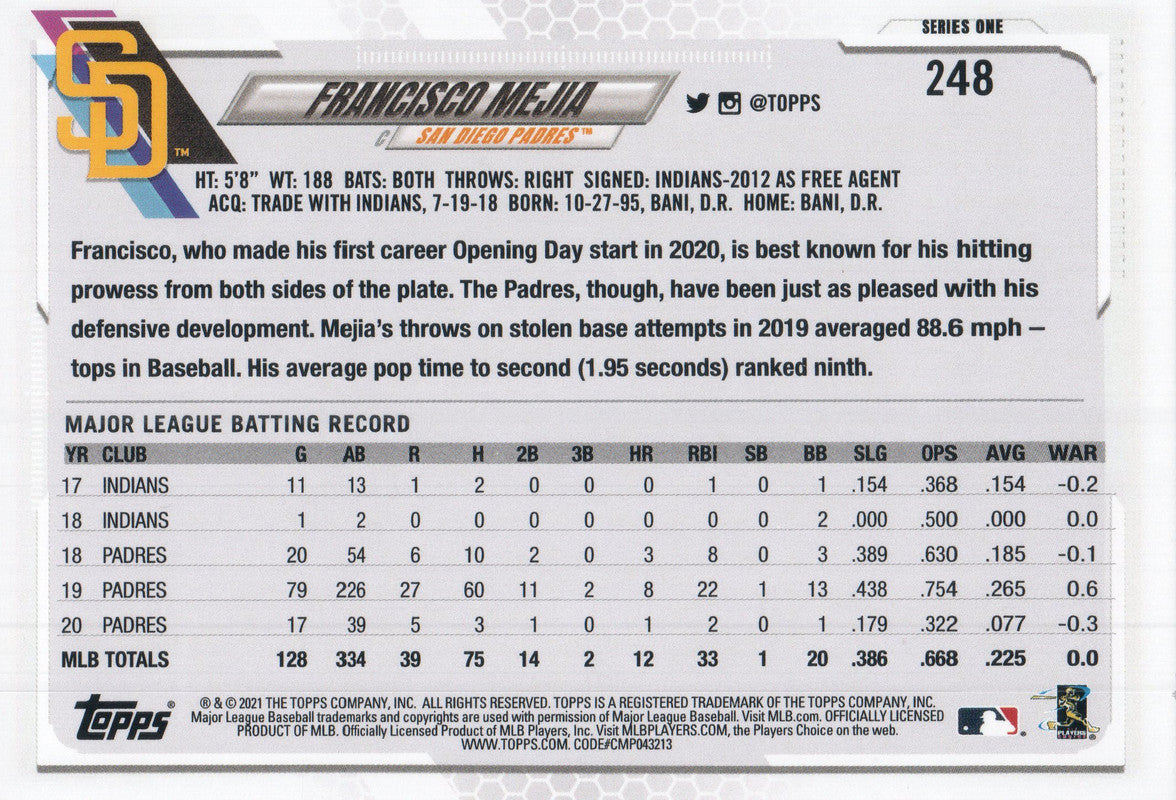 #248 Francisco Mejia San Diego Padres 2021 Topps Series 1 Baseball Card