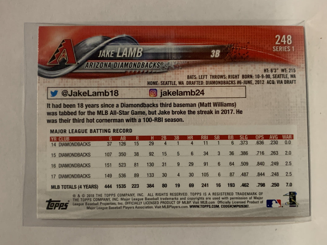#248 Jake Lamb Arizona Diamondbacks 2018 Topps Series One Baseball Card MLB
