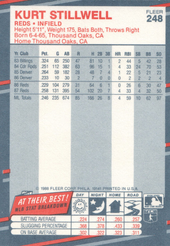 #248 Kurt Stillwell Cincinnati Reds 1988 Fleer Baseball Card OA