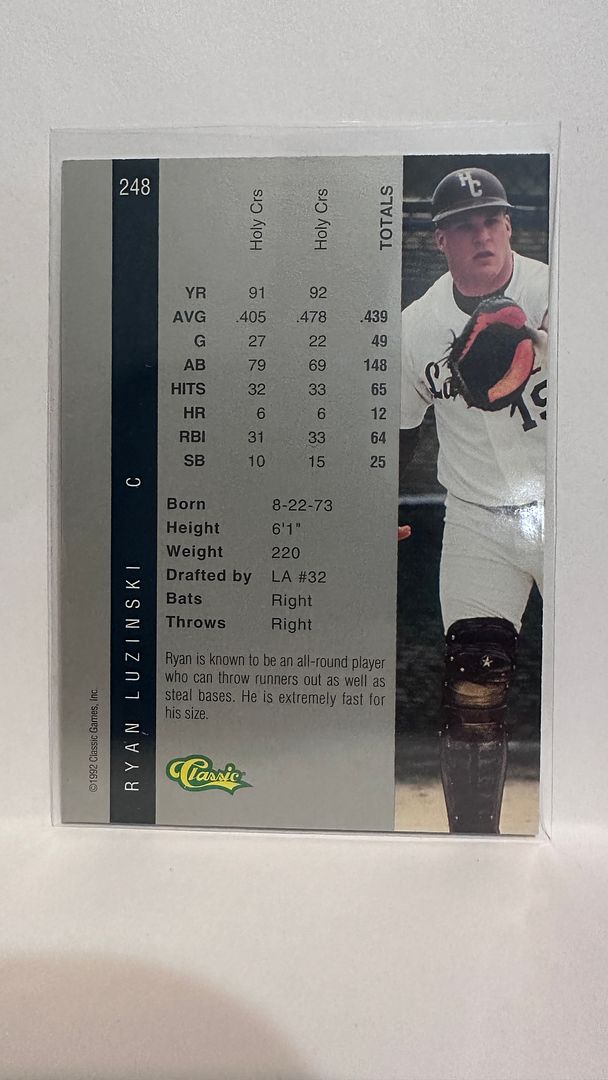 #248 Ryan Luzinski Draft Pick Los Angeles Dodgers 1992 Four Sport Classic Baseball Card