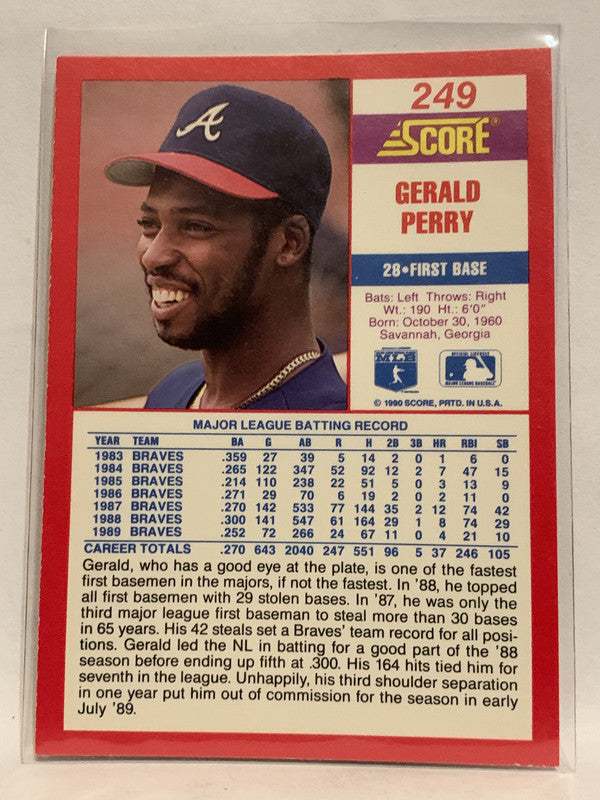 #249 Gerald Perry Atlanta Braves 1990 Score Baseball Card
