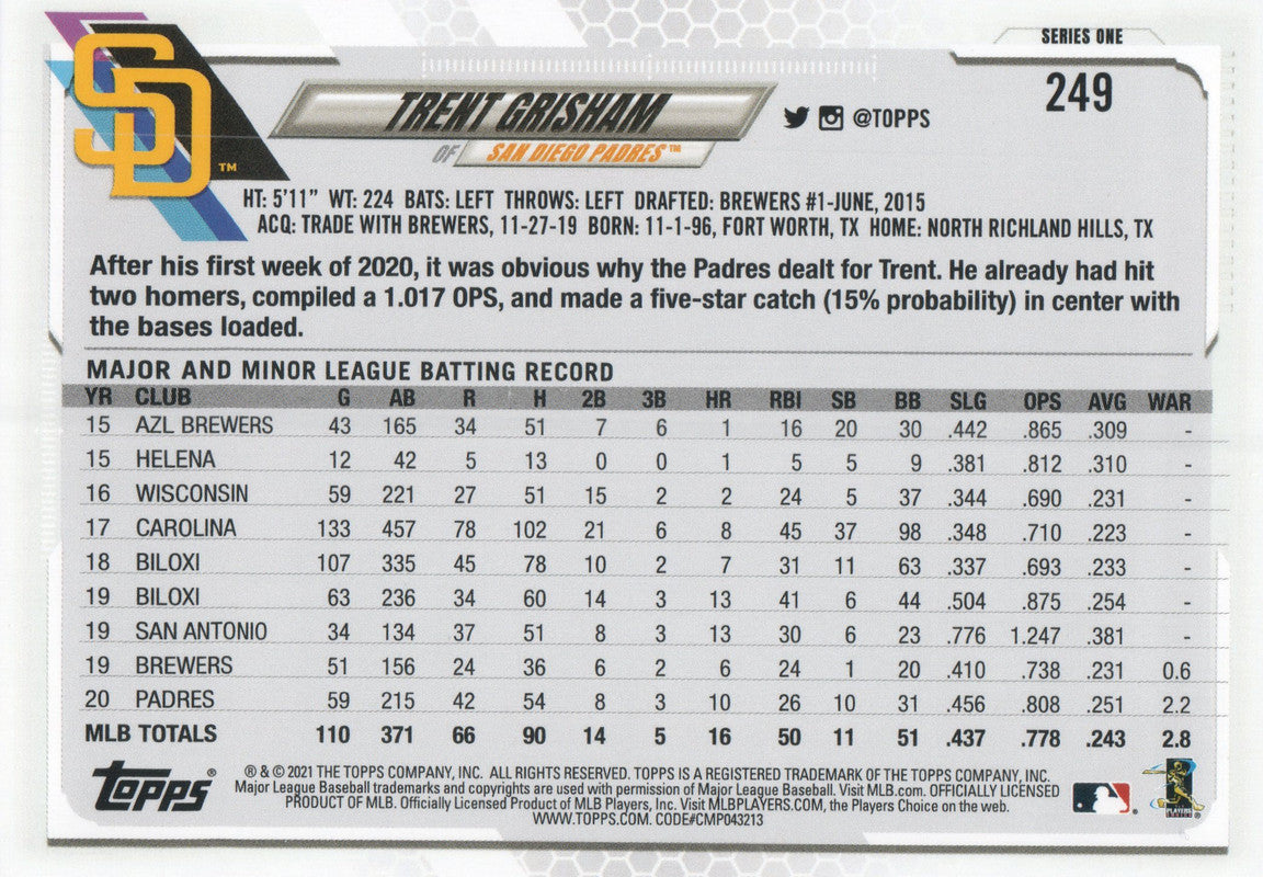#249 Trent Grisham Future Stars San Diego Padres 2021 Topps Series 1 Baseball Card