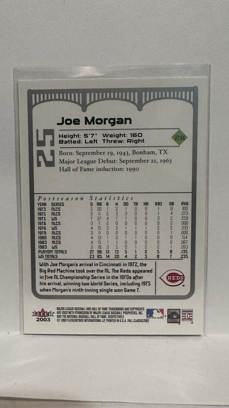 #25 Joe Morgan Cincinnati Reds 2003 Fleer Fall Classics Baseball Card