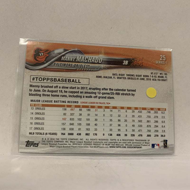 #25 Manny Machado Baltimore Orioles Series 1 2018 Topps Baseball Card A1K
