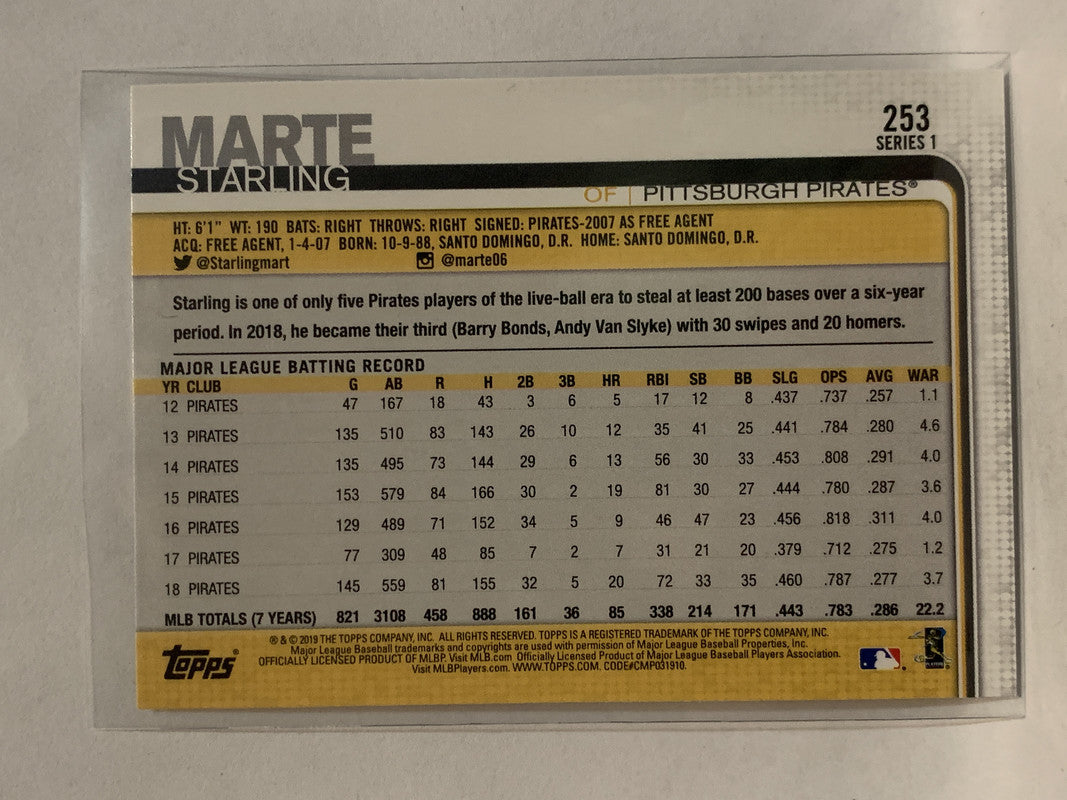 #253 Starling Marte Pittsburgh Pirates 2019 Topps Series One Baseball Card