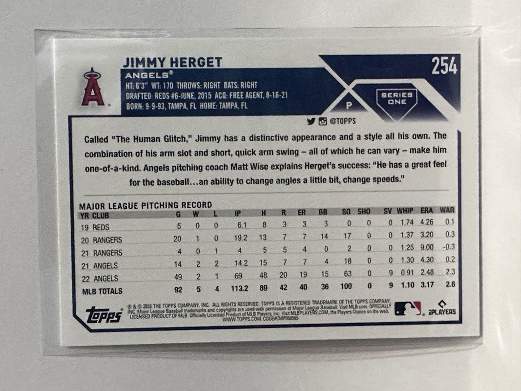#254 Jimmy Herget Los Angeles Angels 2023 Topps Series One Baseball Card