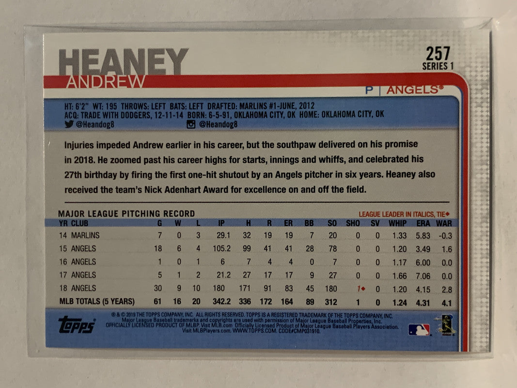 #257 Andrew Heaney Los Angeles Angels 2019 Topps Series One Baseball Card