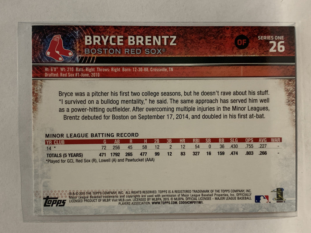 #26 Bryce Brentz Rookie Boston Red Sox 2015 Topps Series One Baseball Card