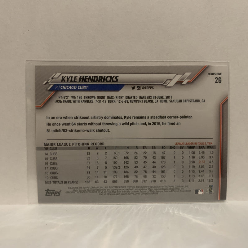 #26 Kyle Hendricks Chicago Cubs 2020 Topps Series One Baseball Card JD