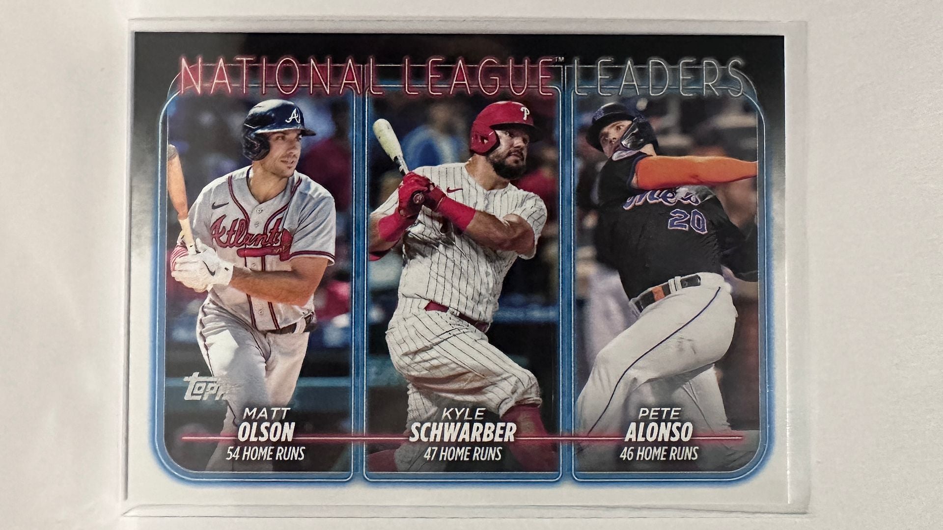 #260 Olson Schwarber Alonso Home Runs Leaders 2024 Topps Baseball Card