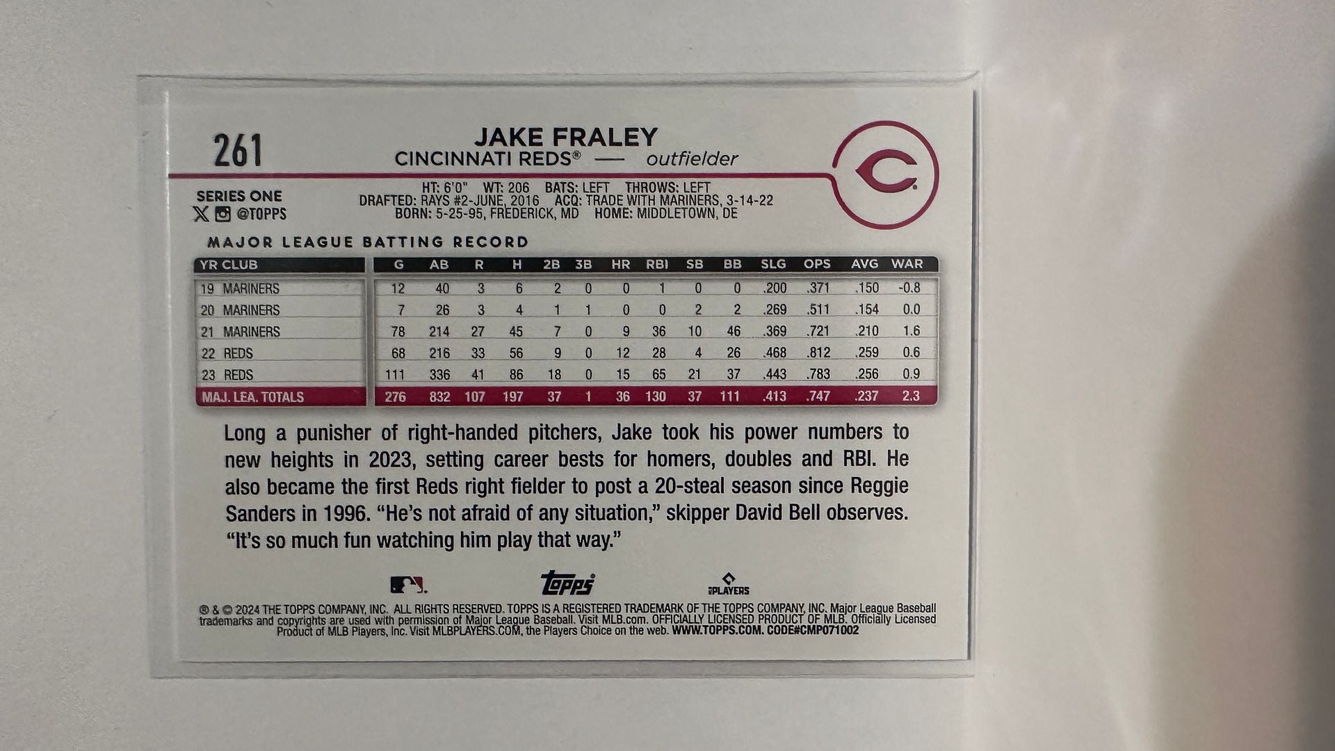 #261 Jake Fraley Cincinnati Reds 2024 Topps Baseball Card