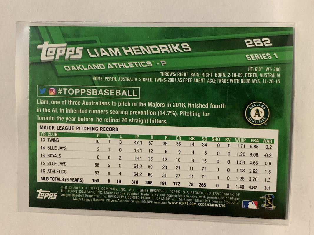 #262 Liam Hendriks Oakland Athletics 2017 Topps Series One Baseball Card