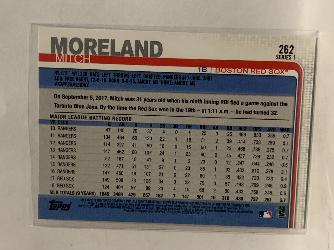 #262 Mitch Moreland Boston Red Sox 2019 Topps Series One Baseball Card