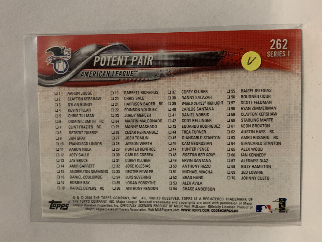 #262 Potent Pair Miggy & Hos 2018 Topps Series One Baseball Card MLB