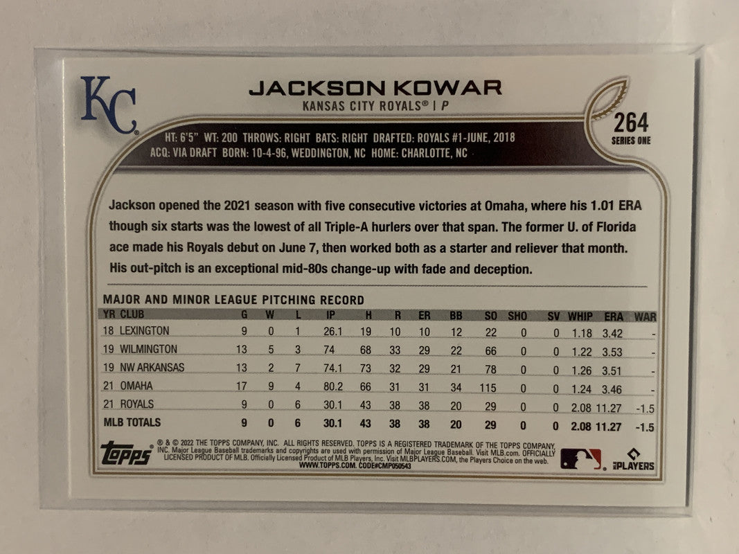 #264 Jackson Kowar Rookie Kansas City Royals 2022 Topps Series One Baseball Card MLB