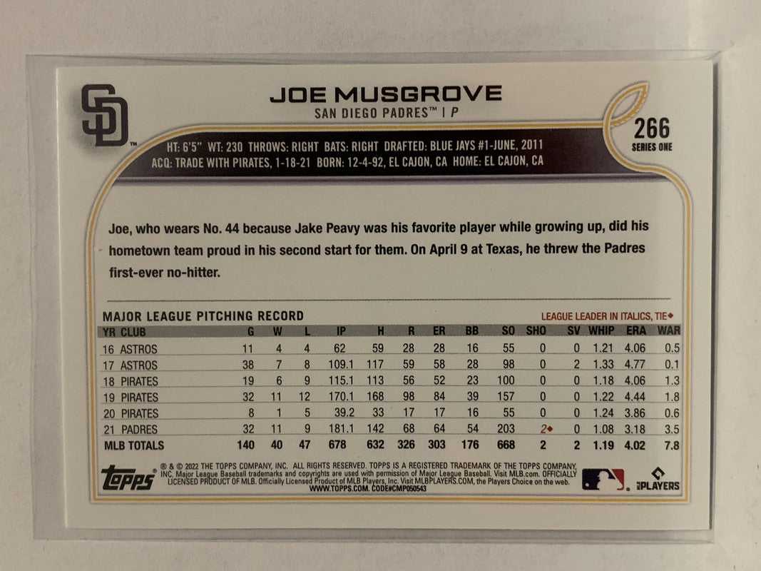 #266 Joe Musgrove San Diego Padres 2022 Topps Series One Baseball Card MLB