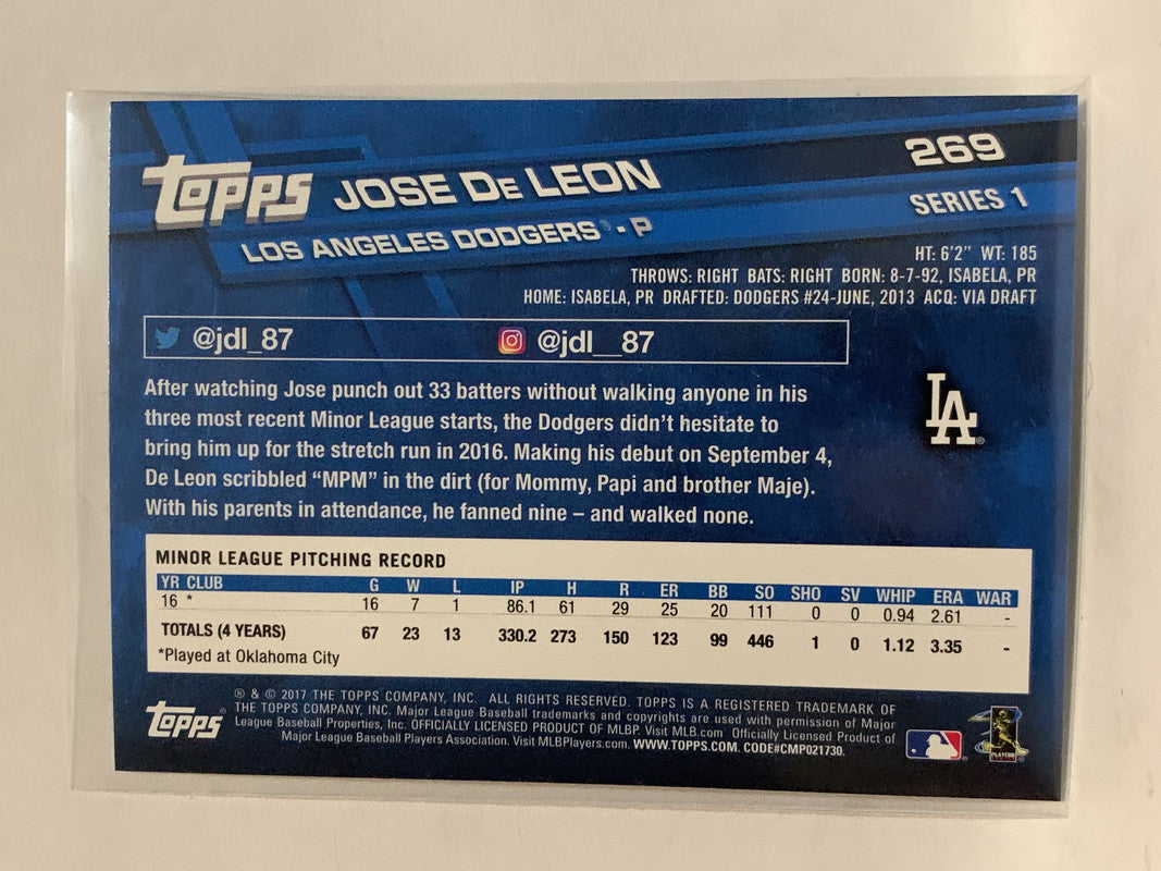 #269 Jose De Leon Los Angeles Dodgers 2017 Topps Series One Baseball Card