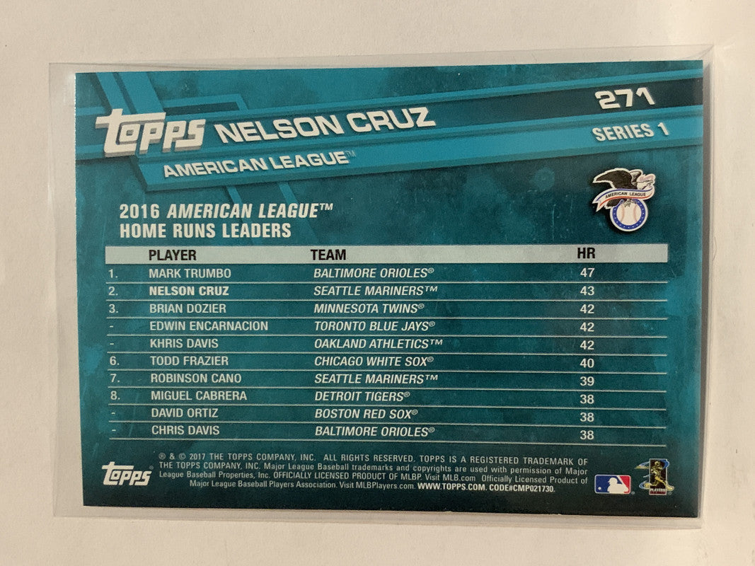 #271 Nelson Cruz League Leaders Seattle Mariners 2017 Topps Series One Baseball Card