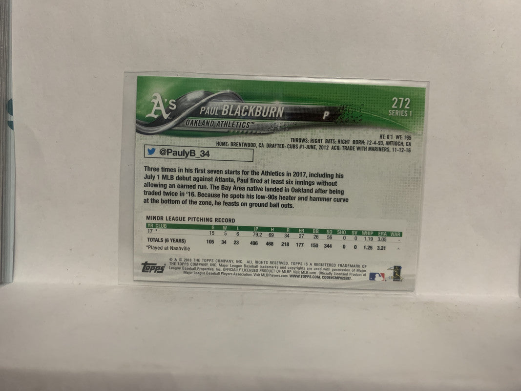 #272 Paul Blackburn Rookie Oakland Athletics 2018 Topps Series 1 Baseball Card NW