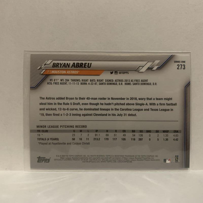 #273 Bryan Abreu Houston Astros Rookie 2020 Topps Series One Baseball Card JB