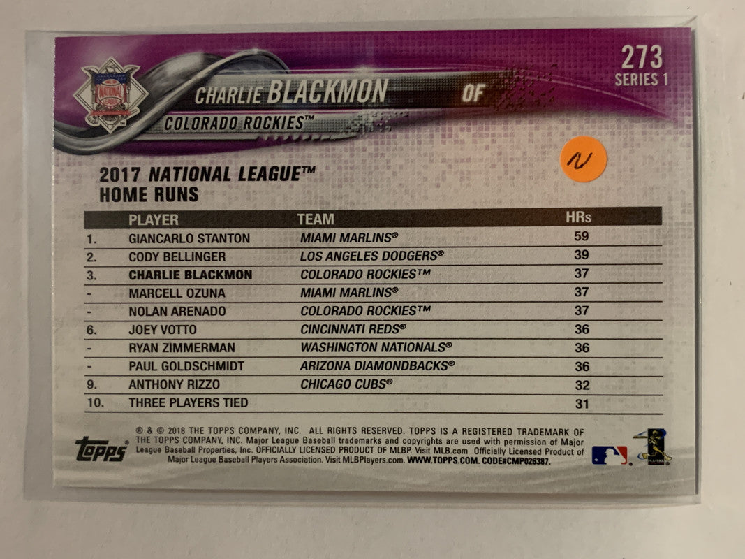 #273 Charlie Blackmon League Leaders Colorado Rockies 2018 Topps Series One Baseball Card MLB