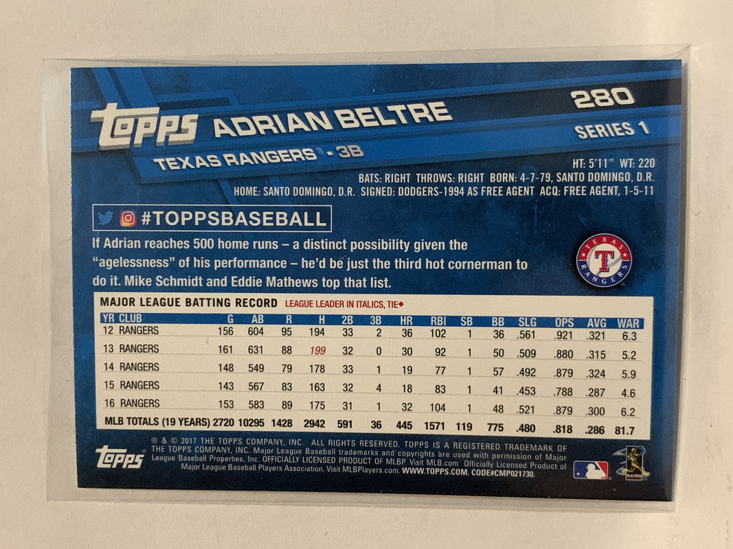 #280 Adrian Beltre Texas Rangers 2017 Topps Series One Baseball Card