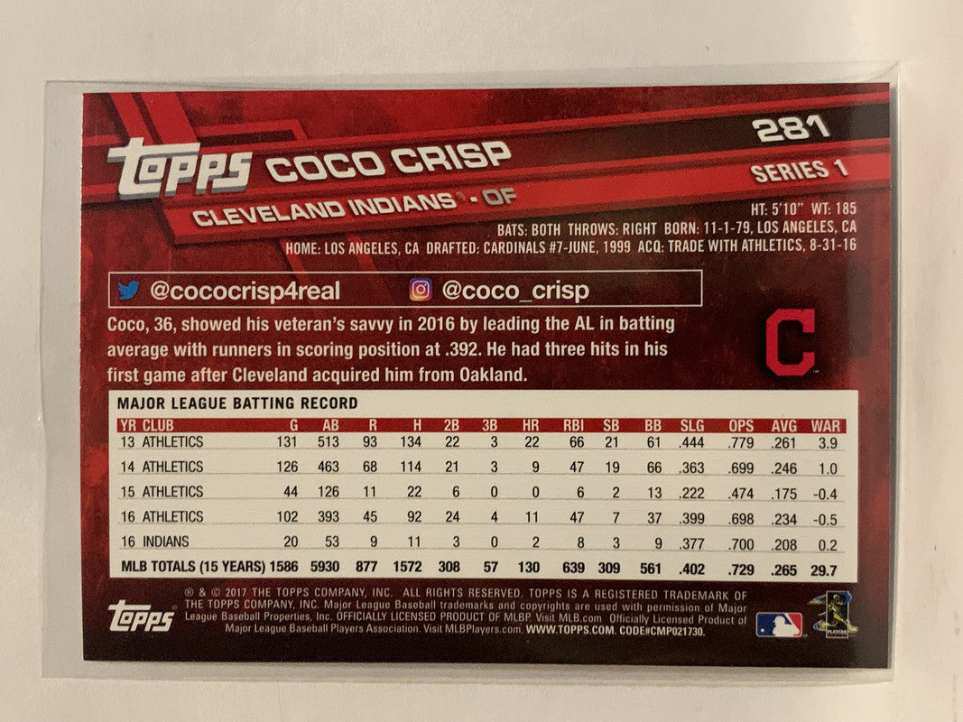 #281 Coco Crisp Cleveland Indians 2017 Topps Series One Baseball Card