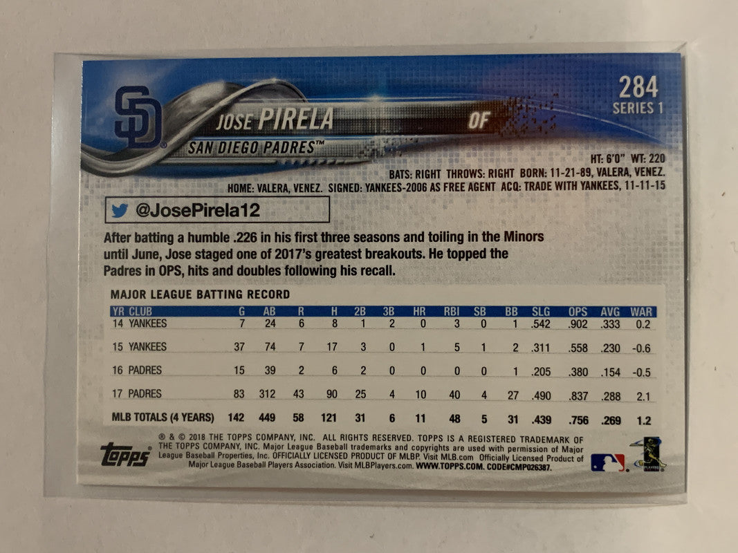 #284 Jose Pirela San Diego Padres 2018 Topps Series One Baseball Card MLB