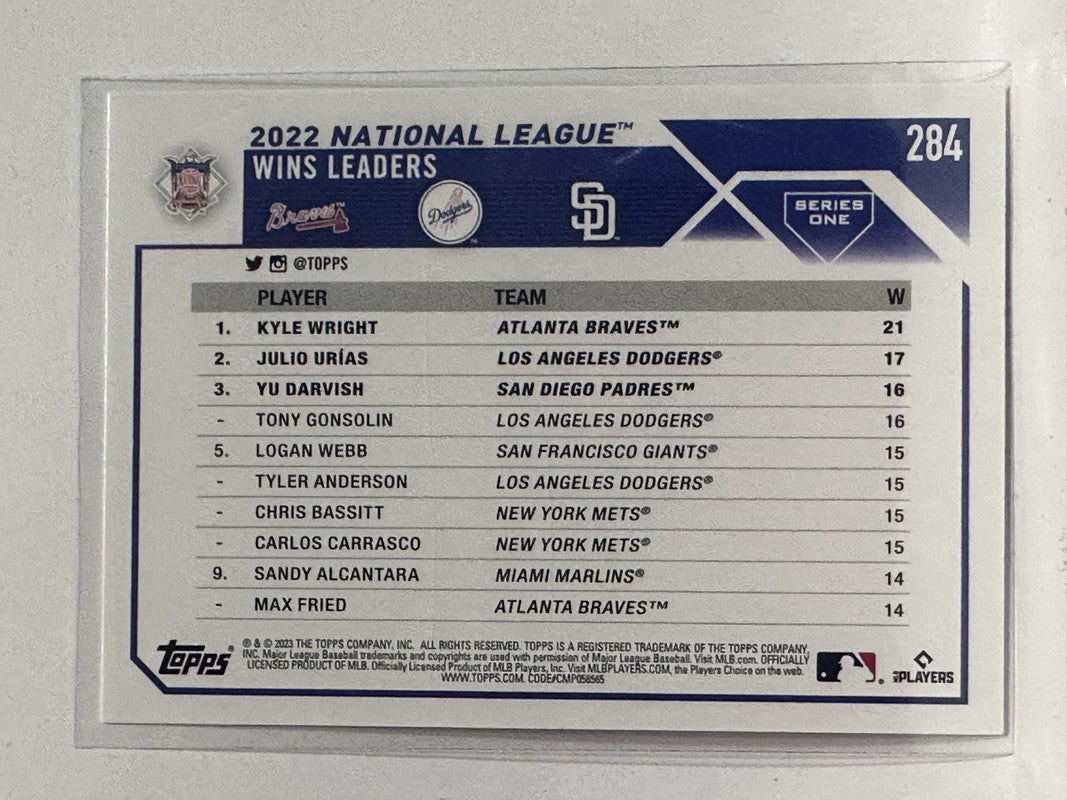 #284 Wright Urias Darvish Wins Leader 2023 Topps Series One Baseball Card