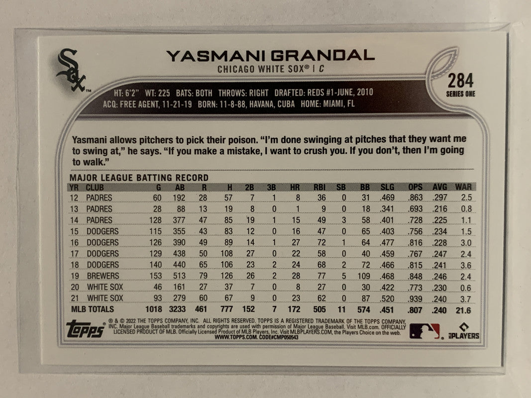 #284 Yasmani Grandal Chicago White Sox 2022 Topps Series One Baseball Card MLB